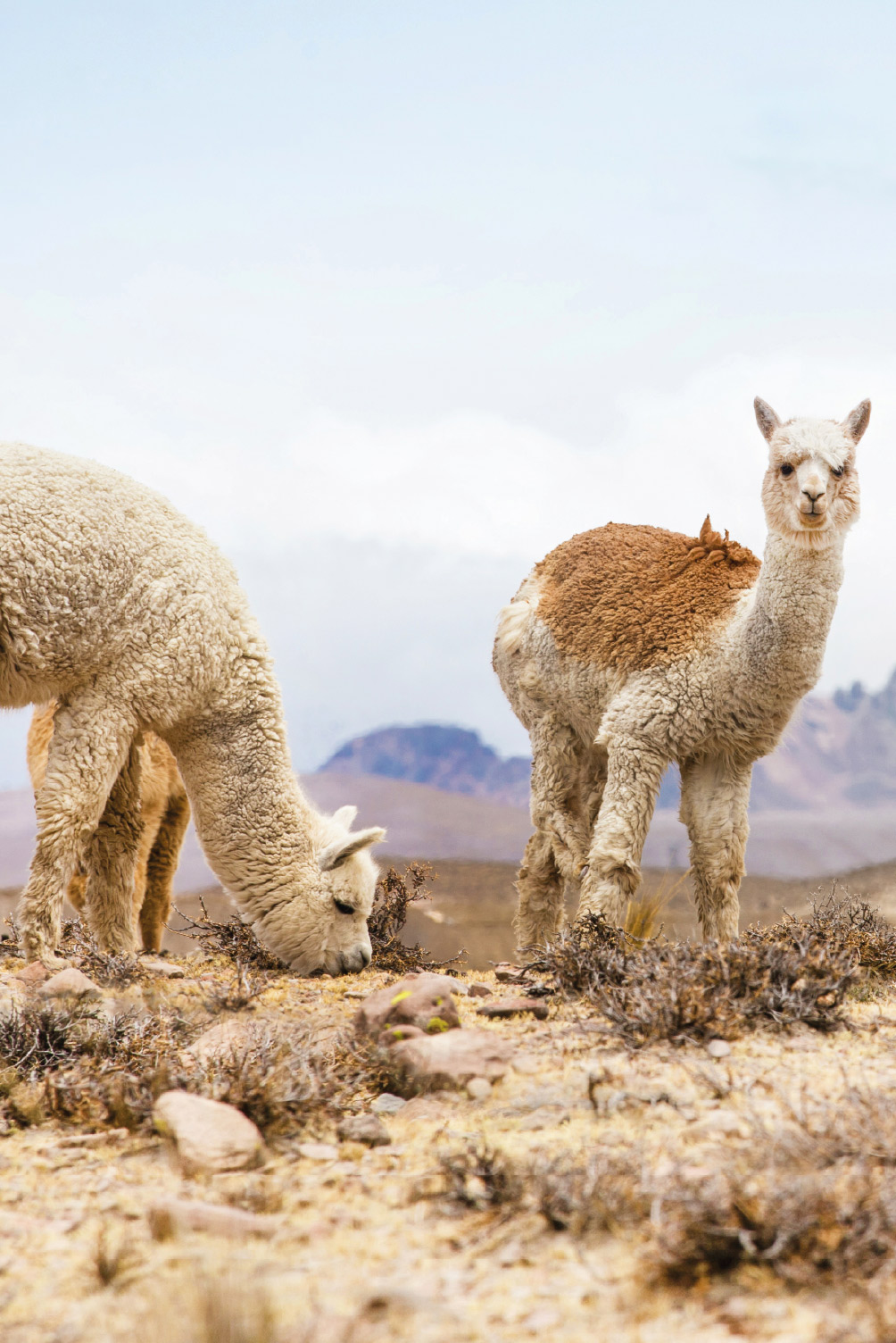 Es un camélido presente en las regiones Andinas del Perú, desde la época pre-inca es valorada por la finura de su pelaje y por su fibra suave y resistente. Tiene una amplia gama de colores pasando desde el blanco al café hasta el gris y el negro, existen dos razas: Huacaya de fibra densa, corta y rizada. Suri de hilos largos, sedosos y con mucho brillo. Debido a su versatilidad se ha logrado transformar en diversas prendas de tejido siendo así un gran protagonista en la moda actual.