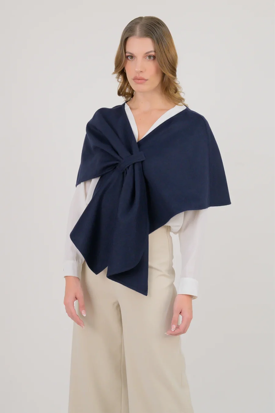 Minimalismo y sofisticación se unen en la Capa Emma. Su diseño estructurado y anudado al frente crea una silueta moderna y femenina, ideal para elevar cualquier look. - 100% Baby Alpaca - 30% Oveja - Talla única