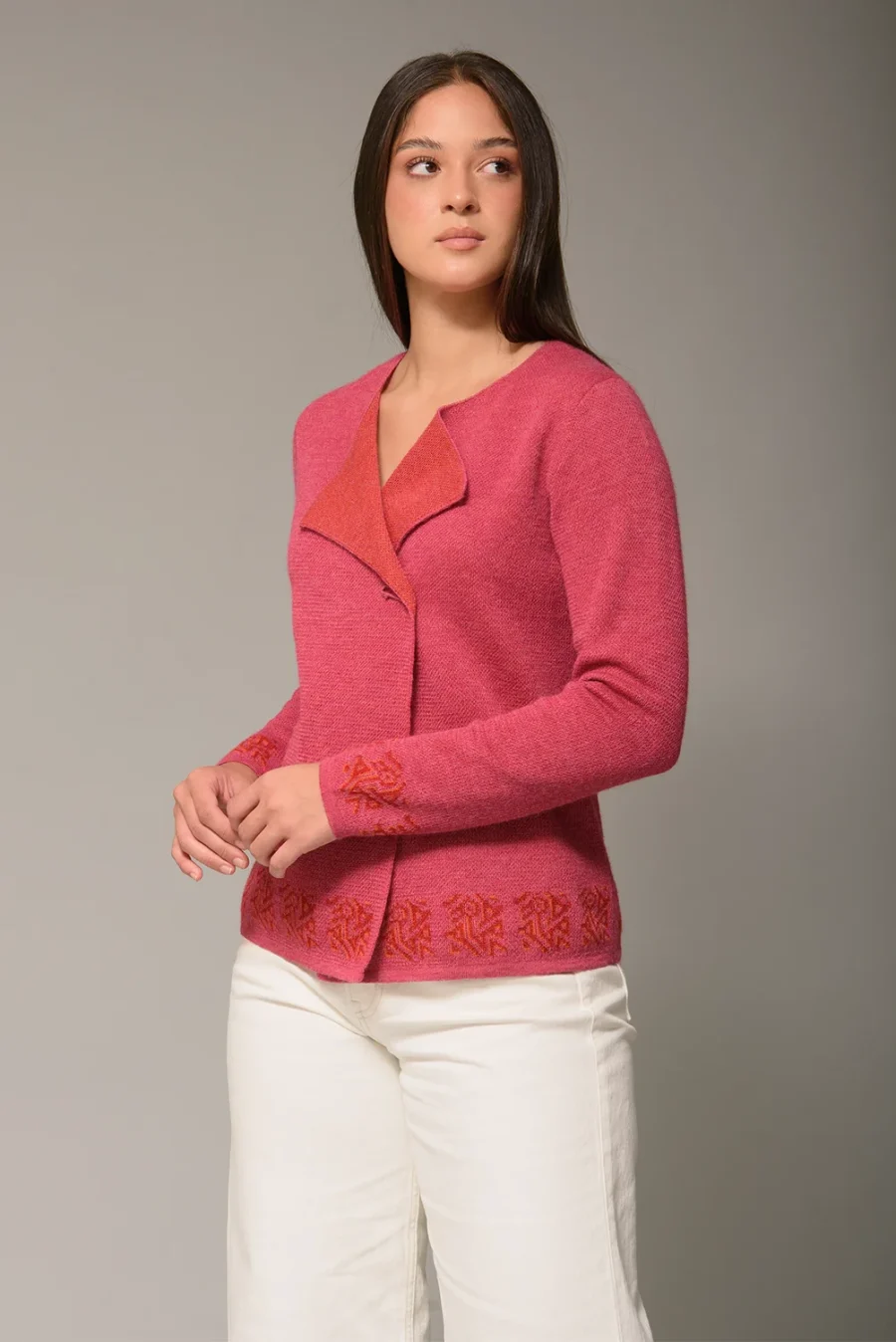 Saco corto con diseño en puños y cuello en V con solapas. Ideal para tardes de frío. - 100% Baby Alpaca