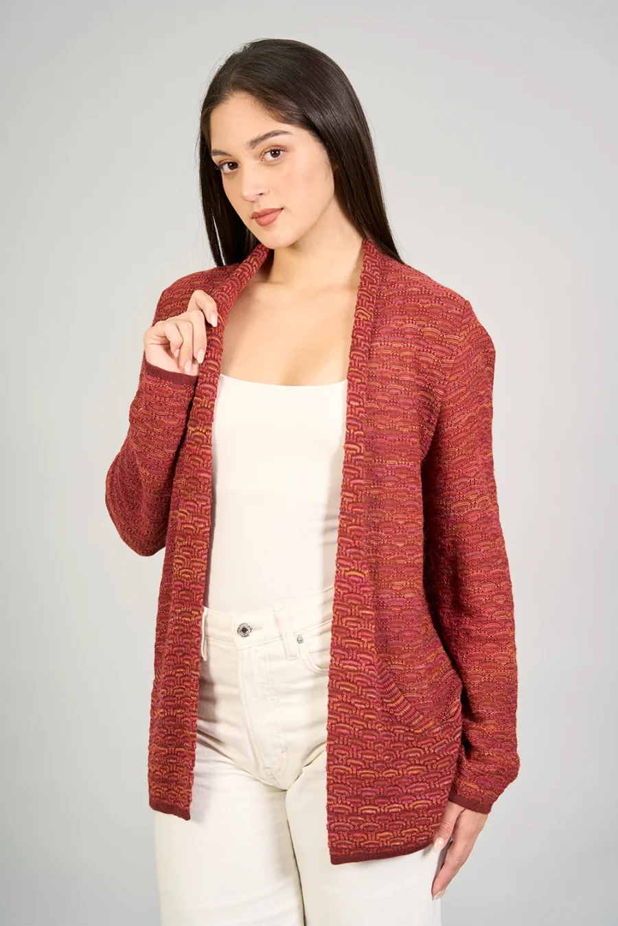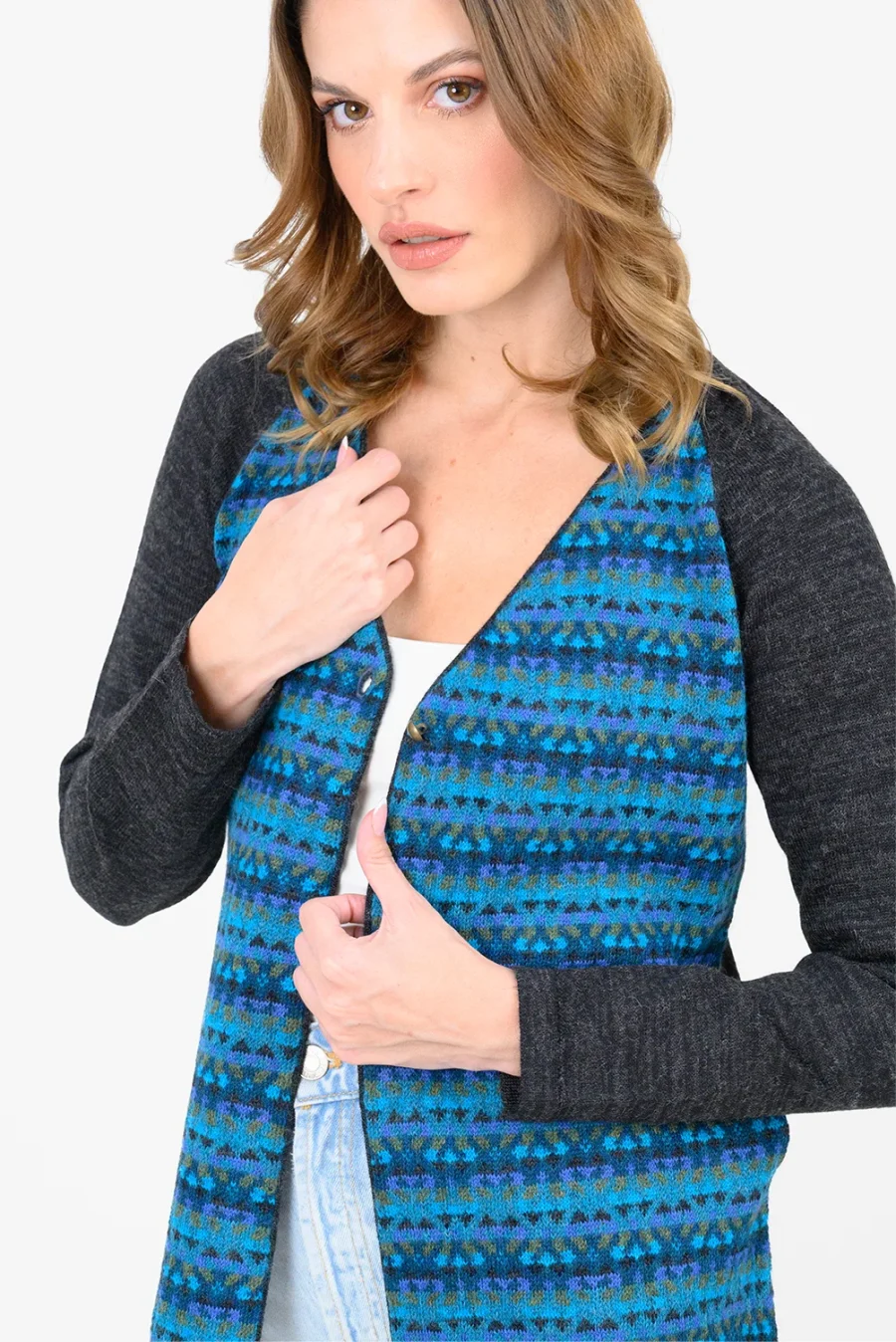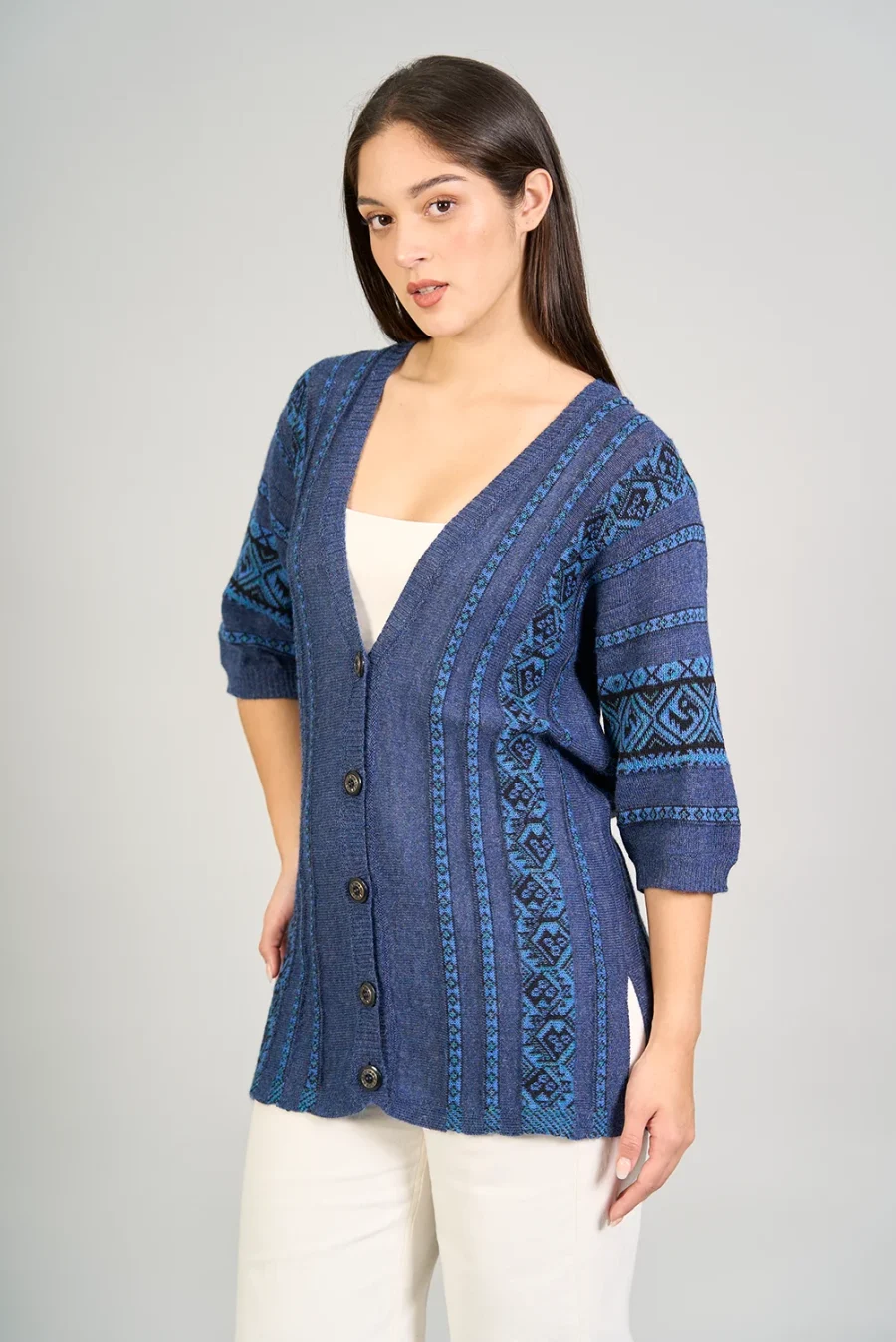 Siente la suavidad de la fibra de alpaca con esta prenda especial y única de nuestra colección, logrando una combinación y un diseño único.