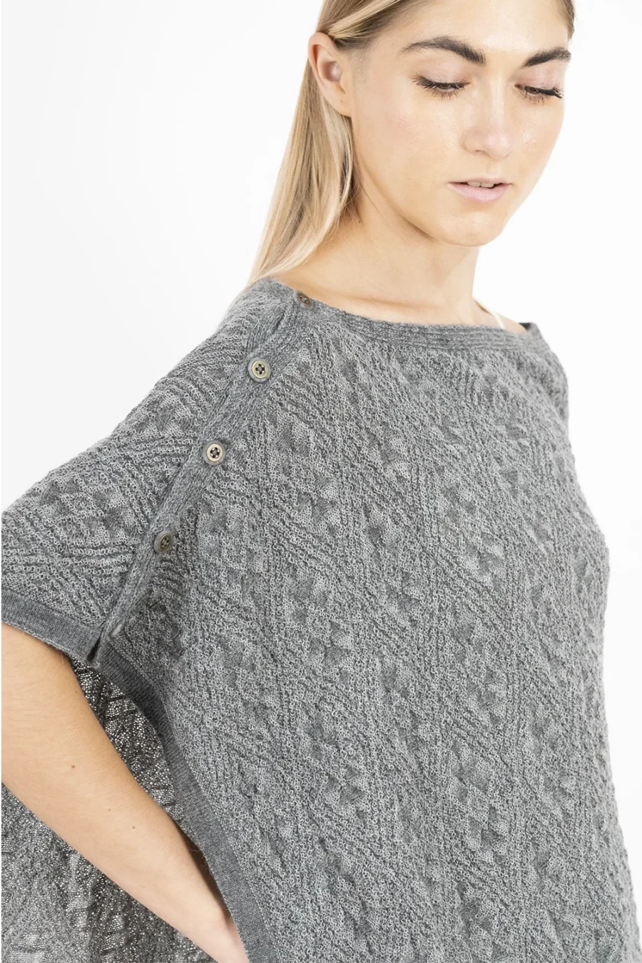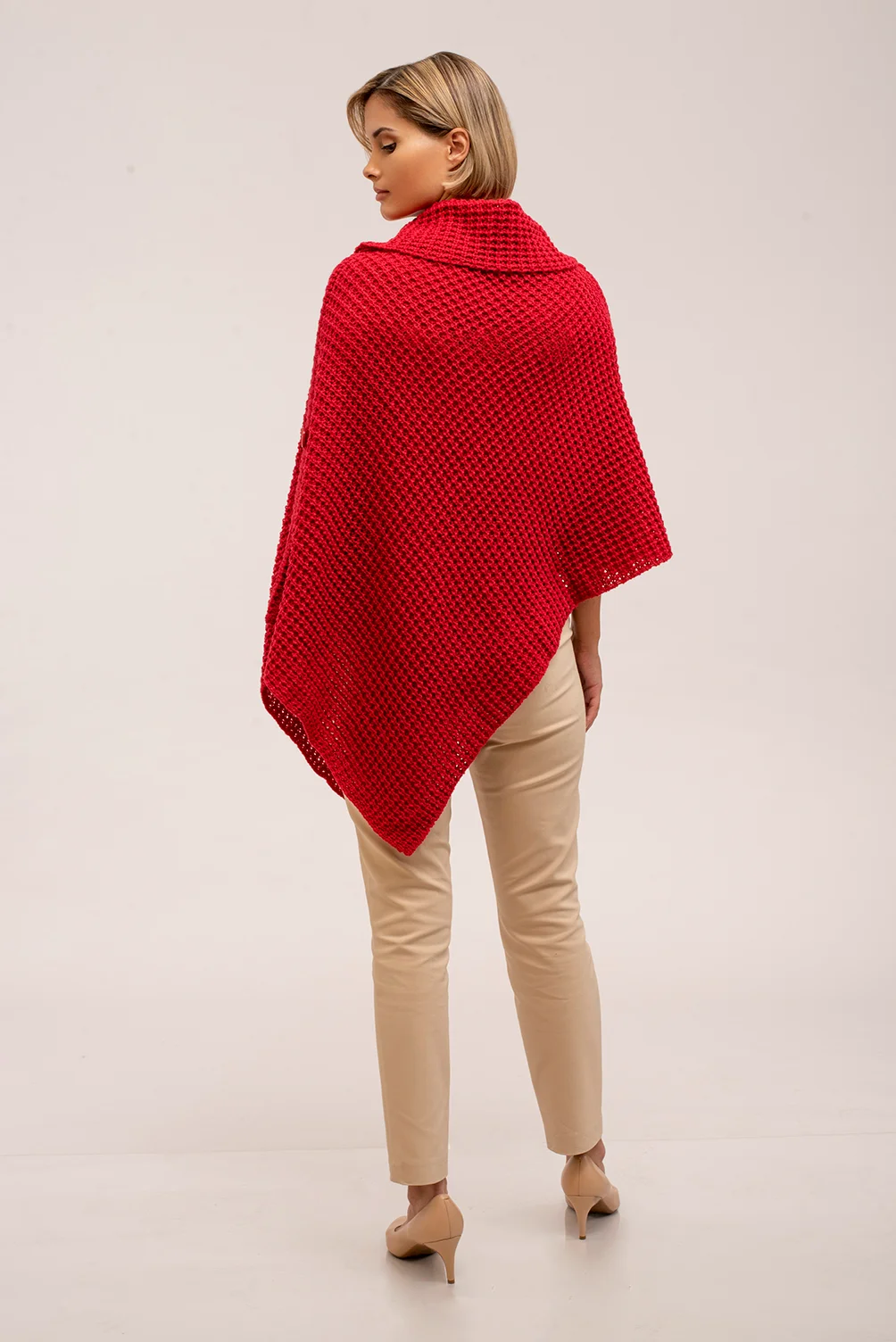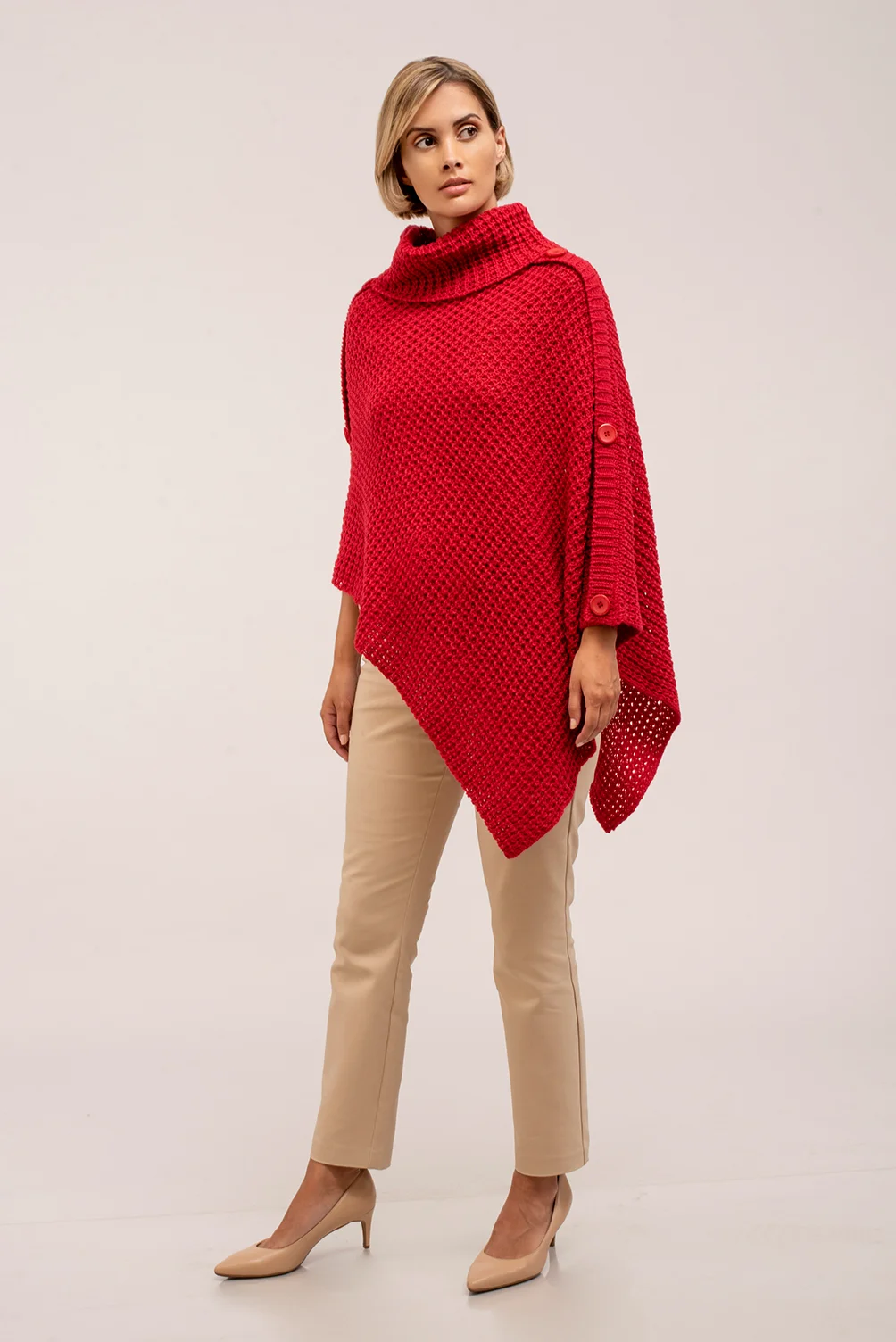 Un poncho cálido y acogedor con un fit relajado, detalle con cuello alto y botones.