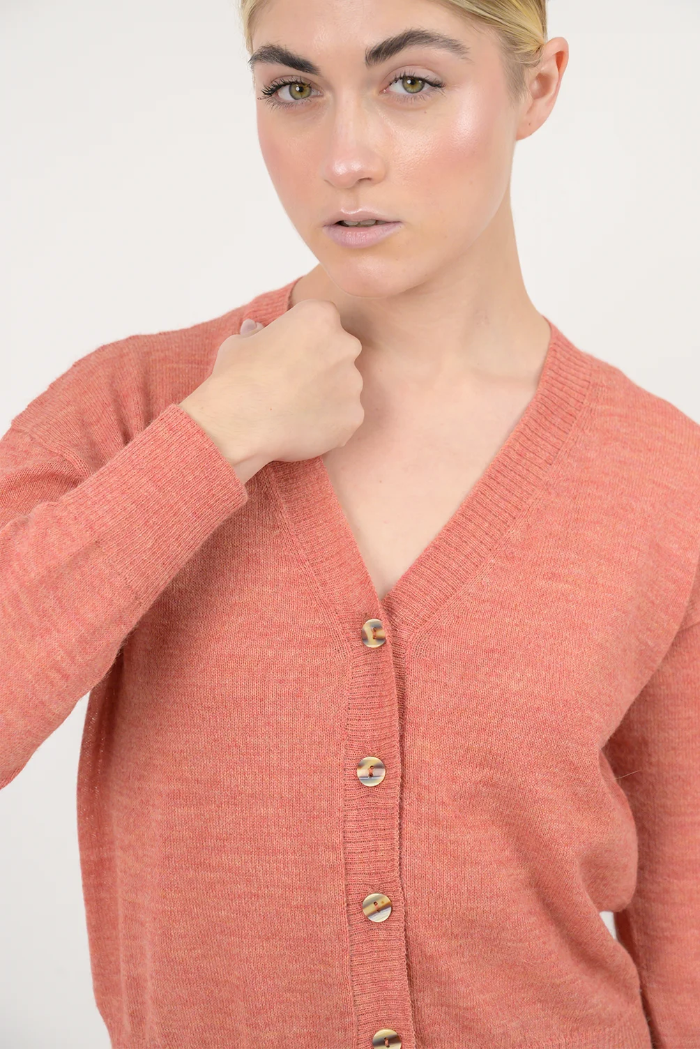 Prenda suave y ligera. Hecha con fibras de 100% baby alpaca. Ingrid está disponible 3 en tonalidades hueso, melon y celeste.