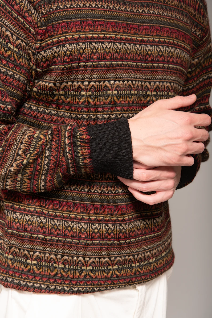 Inspirado en los telares andinos, nuestro suéter Augusto tiene un diseño único con un tejido de punto clásico elaborado en 100% baby alpaca y detallado con un cuello con cierre.