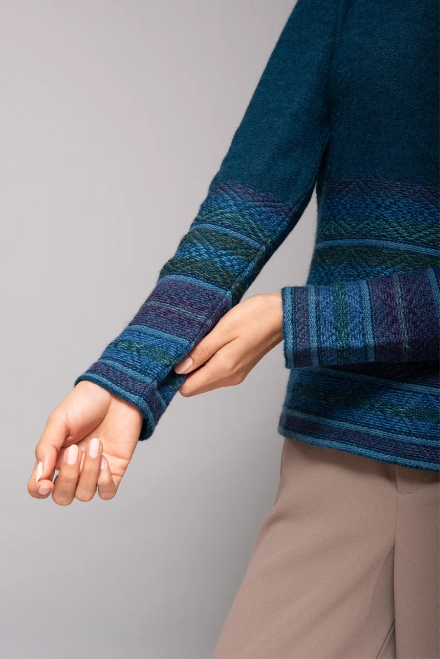 Sweaters, WomenEnjoy the charm of the Andes with an alpaca sweater, adorned with an elegant geometric pattern on the cuffs and hem. - 100% Baby Alpaca$285.00$285.00 -